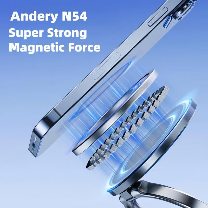 360° & 180° DUAL-AXIS ADIUSTABLE - Dieser magnetische Vakuum-Telefonständer verfügt über einen ringförmigen Metallarm mit zwei Achsen, der sich um 180 Grad verstellen lässt, und eine um 360 Grad drehbare Basis, mit der Sie ihn flexibel auf den gewünschten Winkel einstellen und sicher fixieren können. Ausführliche Tests bestätigen seine hervorragende Stabilität. Das innovative Faltdesign reduziert seine Größe um 50 %, wenn er nicht in Gebrauch ist, und hält Ihren Arbeitsbereich sauber und ordentlich.