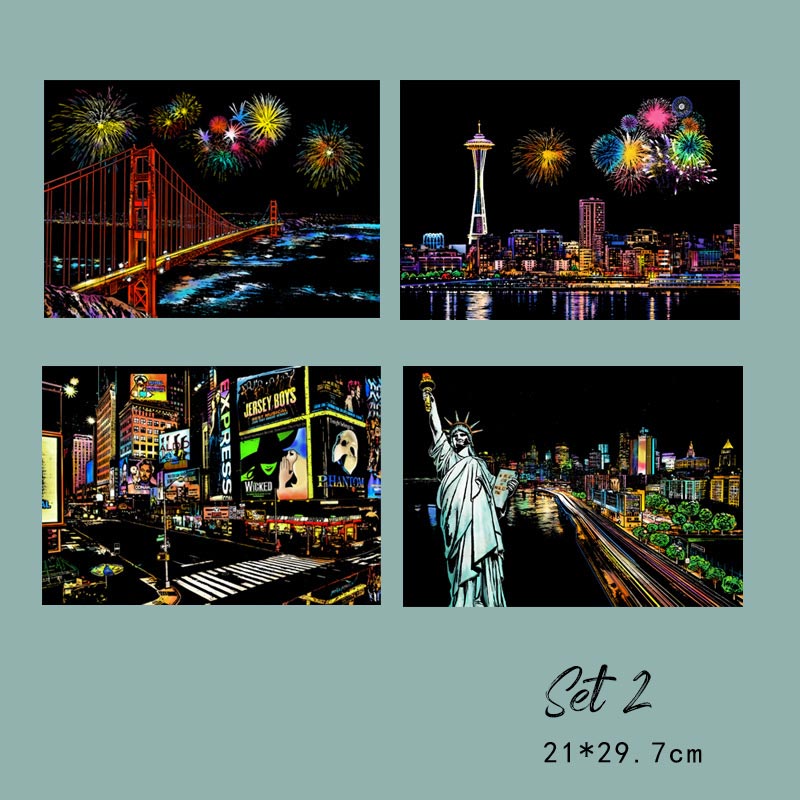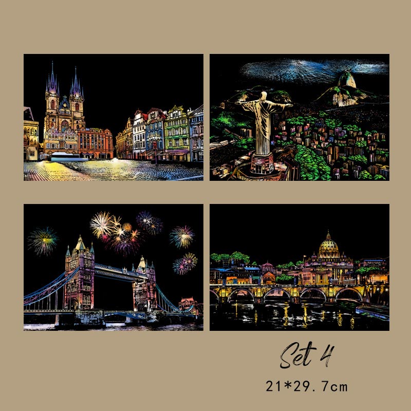 - 1 × 4-teiliges Kreatives Scratch-Malerei-Set mit Werkzeug