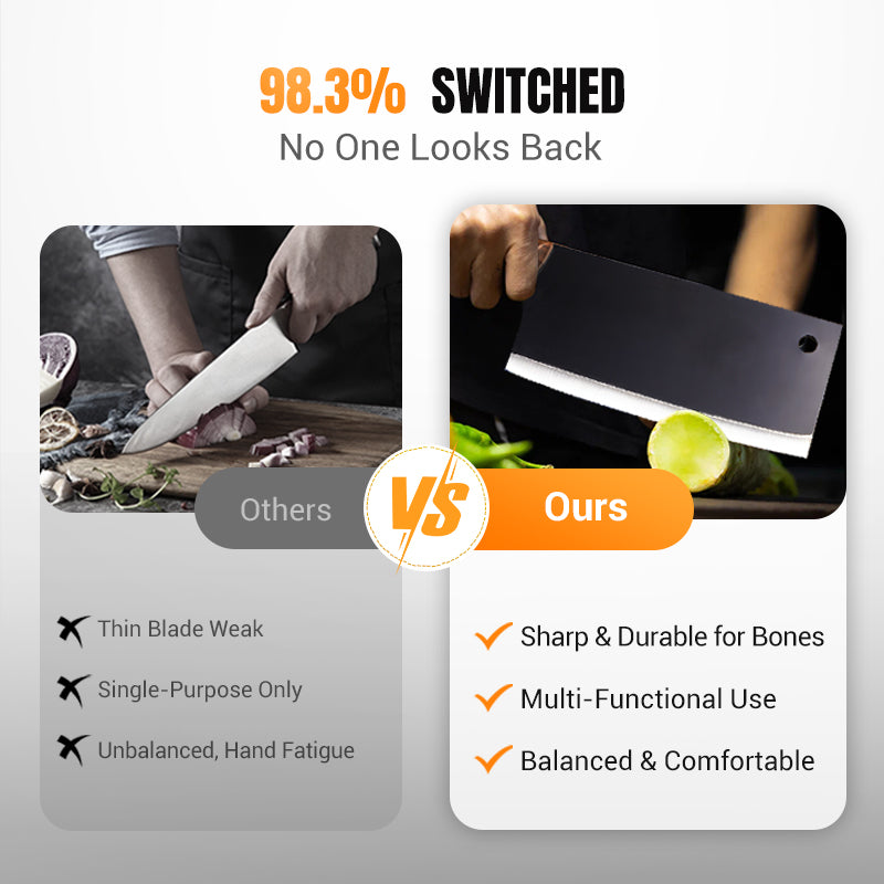 HÄRTEBEHANDELT & GESCHMIEDET: Hergestellt mit traditionellen Schmiedetechniken und Wärmebehandlung für überlegene Haltbarkeit. Die Hochkohlenstoffstahl-Klinge widersteht Absplitterungen und behält ihre Schärfe auch bei intensiver Nutzung. Im Gegensatz zu billigen Stanzmessern garantiert diese geschmiedete Konstruktion lang anhaltende Leistung in jeder Küche.
