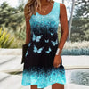 ⏳ Befristetes Angebot⏰Modischer Druck ärmelloses Minikleid für Frauen