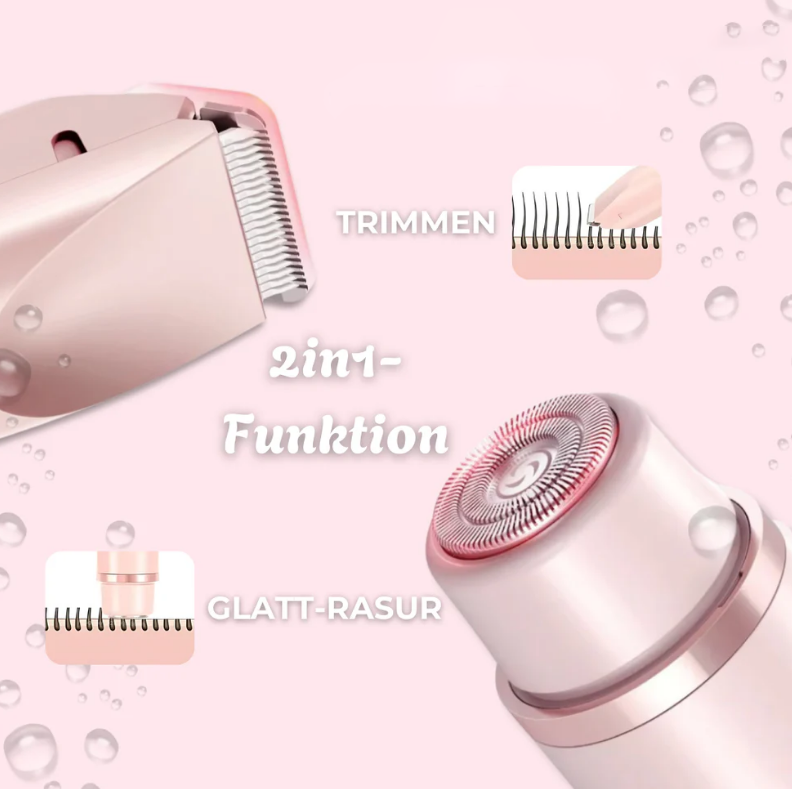 Mit dem 2 in 1 Elektrischer Rasierer passt du deine Rasur genau an deine Bedürfnisse an. Der Trimm-Aufsatz kürzt die Haare sanft auf die gewünschte Länge, während der Glatt-Aufsatz für eine seidig-glatte Haut ohne Stoppeln sorgt. Dank der hautschonenden Technologie ist der Rasierer für alle Körperbereiche geeignet egal ob Beine, Achseln oder empfindliche Zonen. Maximale Präzision, genau so, wie du es willst!