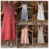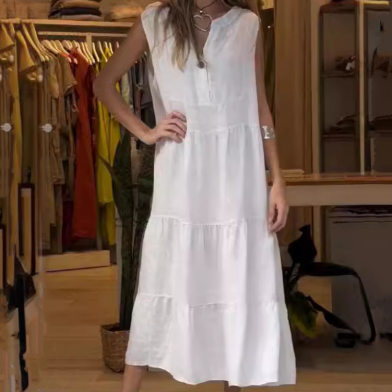 👗62% Rabatt🌸Ärmelloses, gestuftes langes Damenkleid mit V-Ausschnitt und Knöpfen